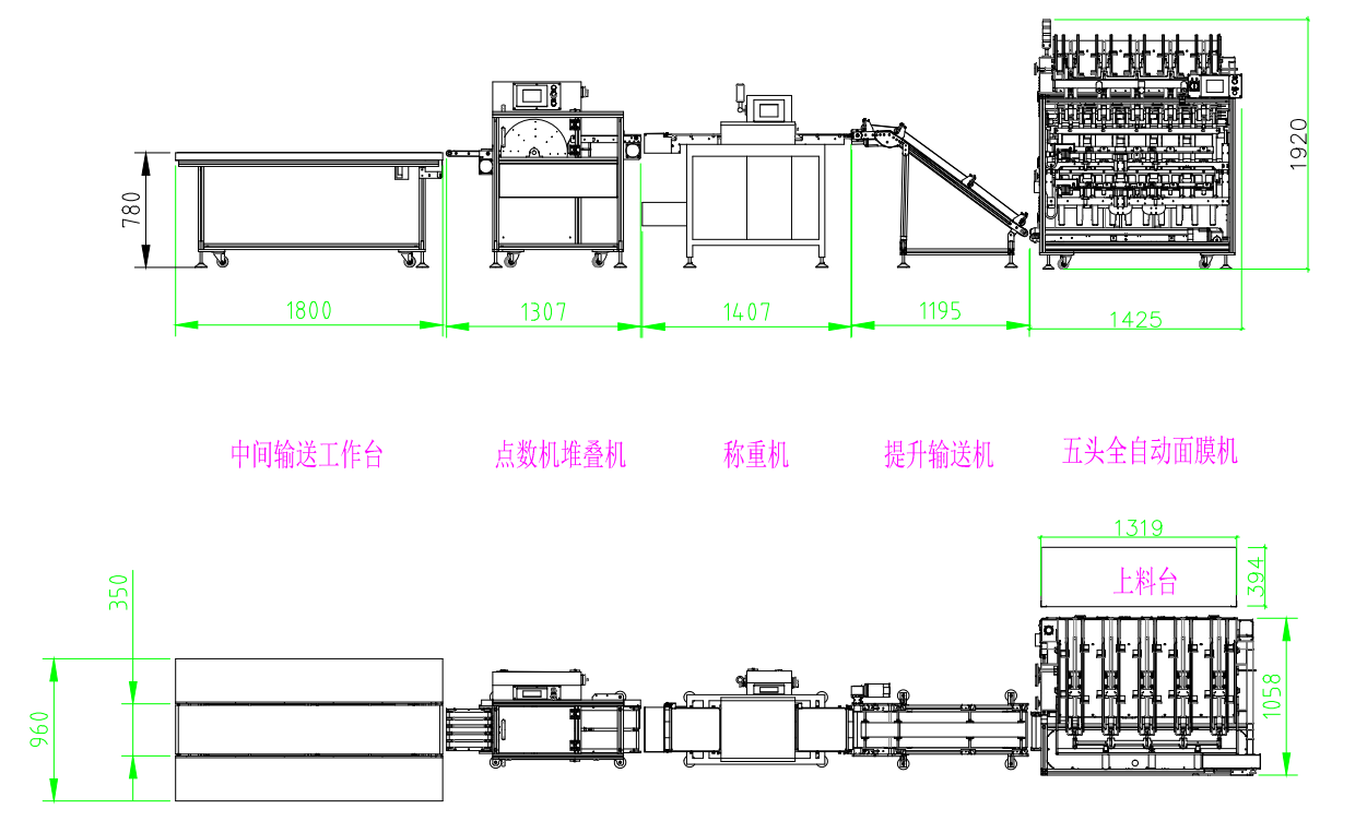 把從全自動面膜機生產(chǎn)出來的成品面膜提升到流水線高度
