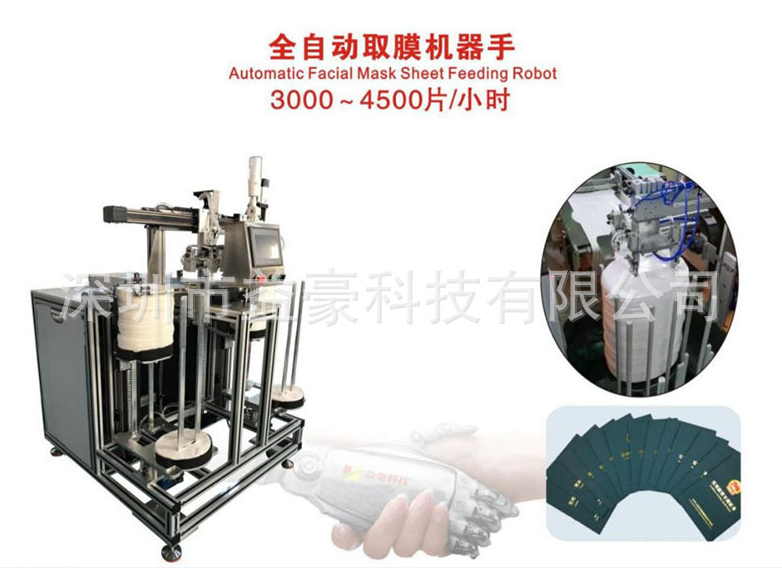 益豪科技公司旗下還研發(fā)生產(chǎn)了 眼膜折疊機”“膜布檢測機”、”稱重機”、”面膜點數(shù)堆疊機”、”全自動取膜機器手”、”開盒機”等一系列面膜生產(chǎn)配套設備,其中“膜布檢測機”可以對接在“全自動面膜機”后面,實現(xiàn)對罐裝后的面膜袋進行有無膜布的檢測;其中”稱重機”可以對接在“全自動面膜機”或“膜布檢測機”后面,對生產(chǎn)出的產(chǎn)品進行重量檢測,對少重或超重的產(chǎn)品進行剔除;其中”面膜點數(shù)堆疊機”可以對接在“全自動面膜機”、“膜布檢測機”或”稱重機”后面,實現(xiàn)對成品面膜袋的點數(shù)和堆疊,便于后續(xù)的包裝打包;其中”全自動取膜機器手”可以對接在“高速折棉入袋一體機”前面,實現(xiàn)自動取膜,減少了人工操作。