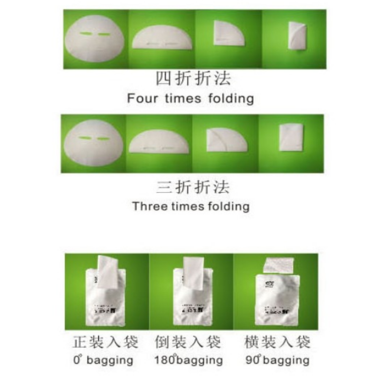1、高速面膜折膜機的工作流程:手工放棉、自動折棉、自動轉(zhuǎn)向、自動裝袋、空袋檢測、自動壓袋、成品收集;